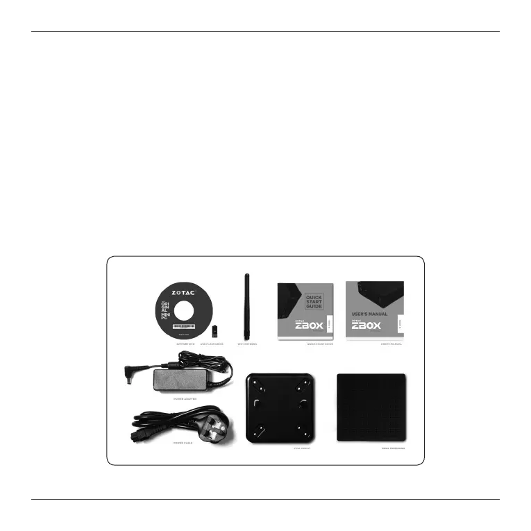 package contents of your new ZOTAC ZBOX nano. If any of the below items is damaged or missing,