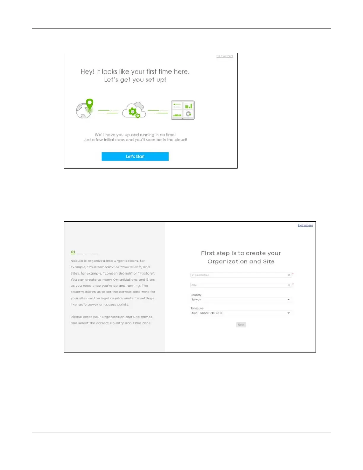 4 If you are creating the first organization under your account, click Let’s Start to begin.