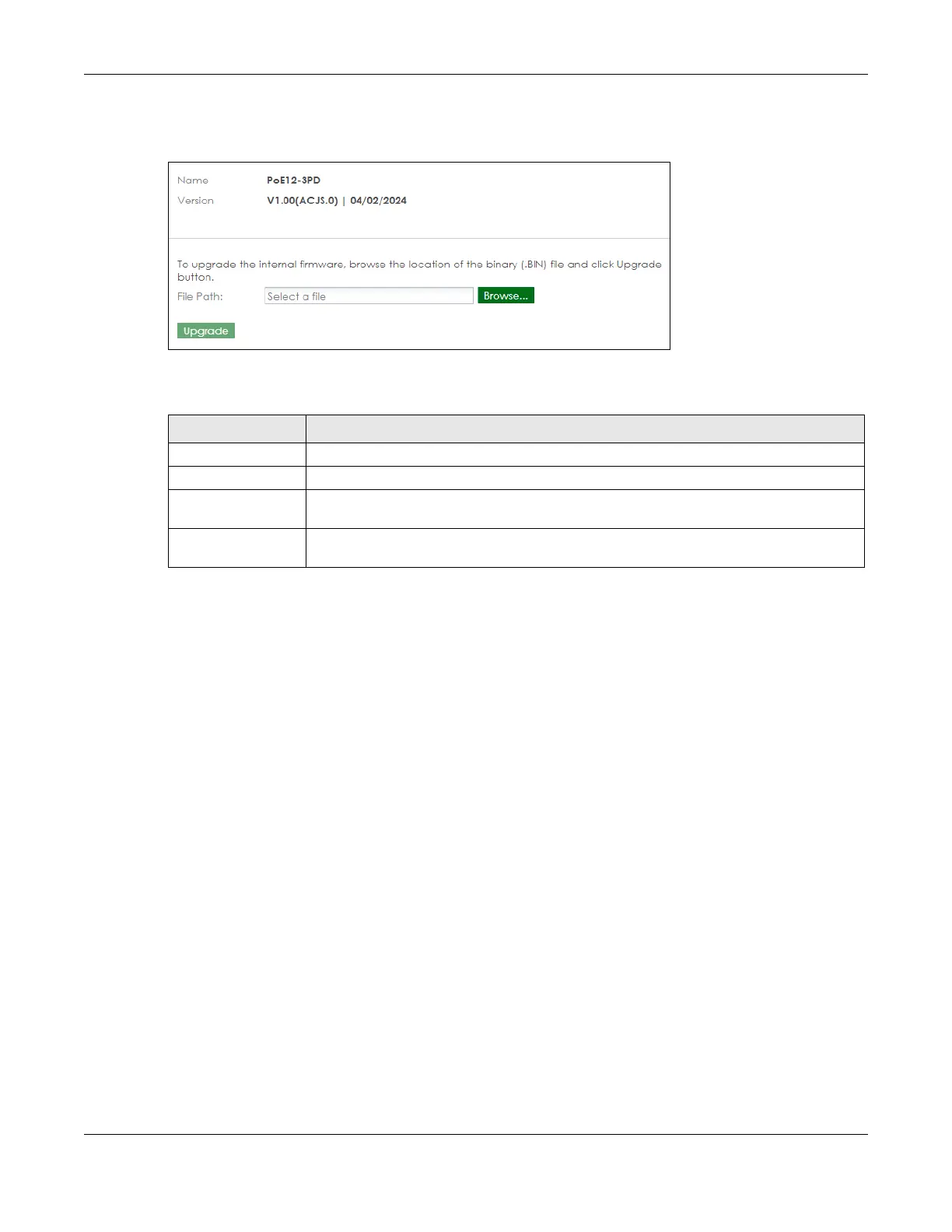 Upgrade After a successful upgrade, the system will reboot, and you will need to log into the PoE12-