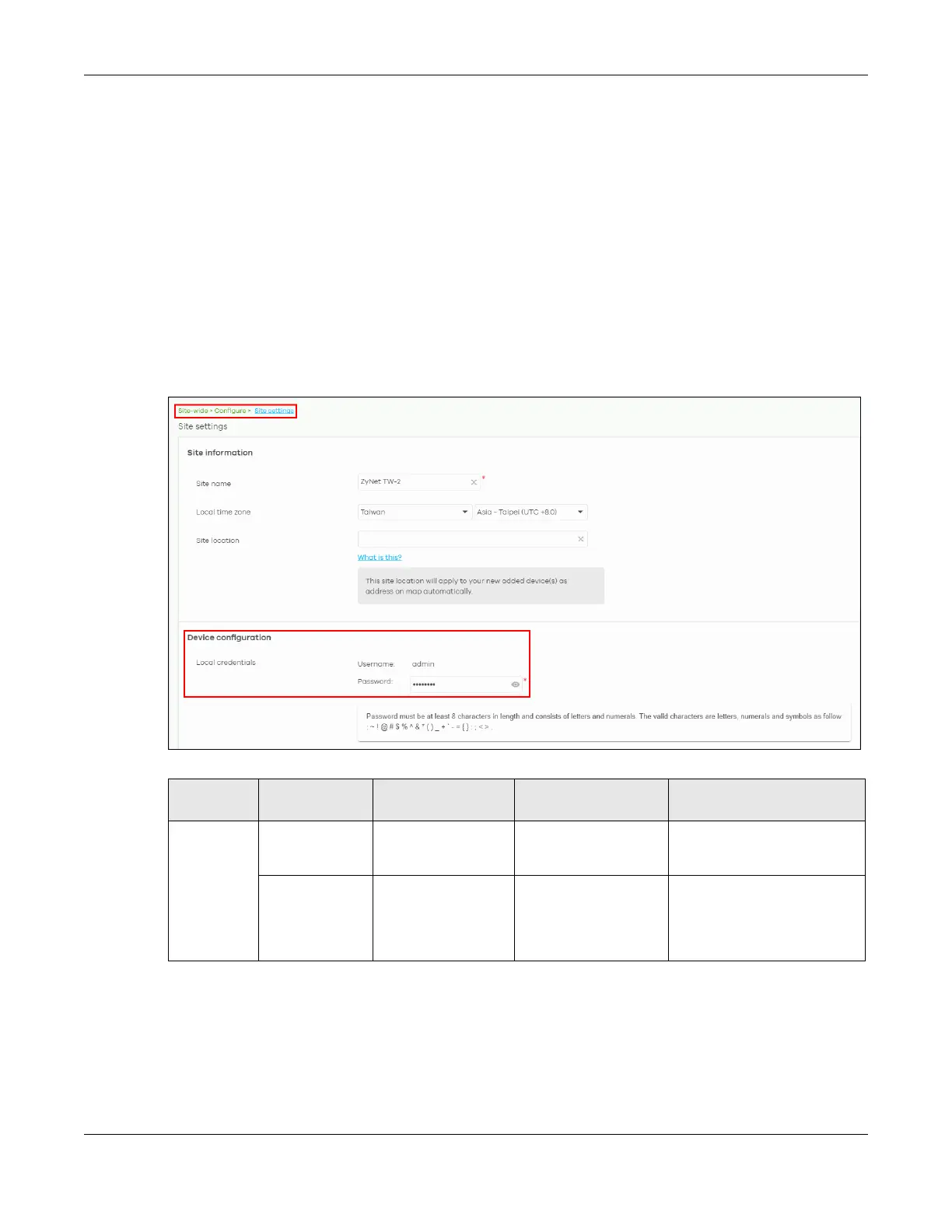 Figure 2 Site-wide > Configure > Site settings: Device configuration: Local credentials