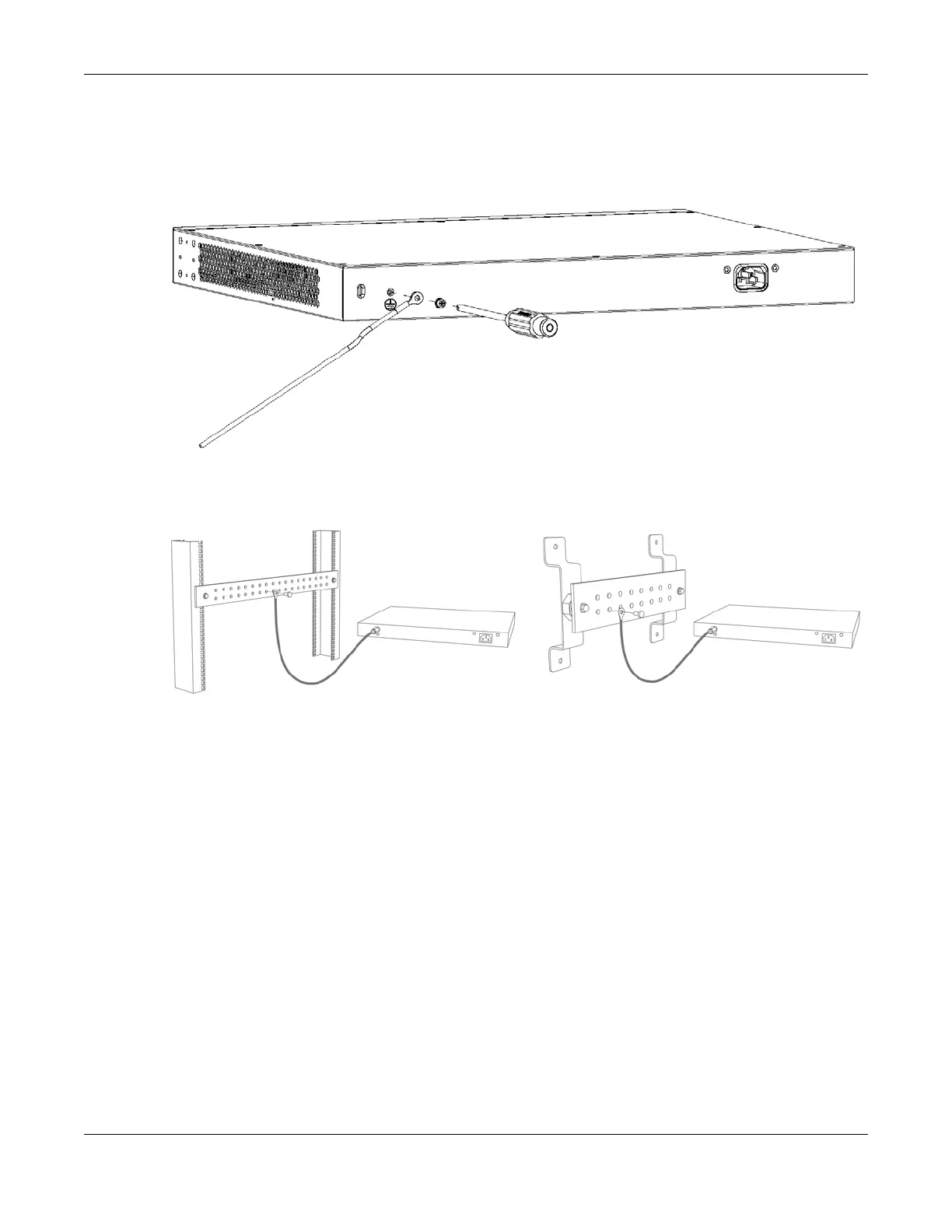 2 Secure a green or yellow ground cable (16 AWG or smaller) to the Switch's rear panel using the M4